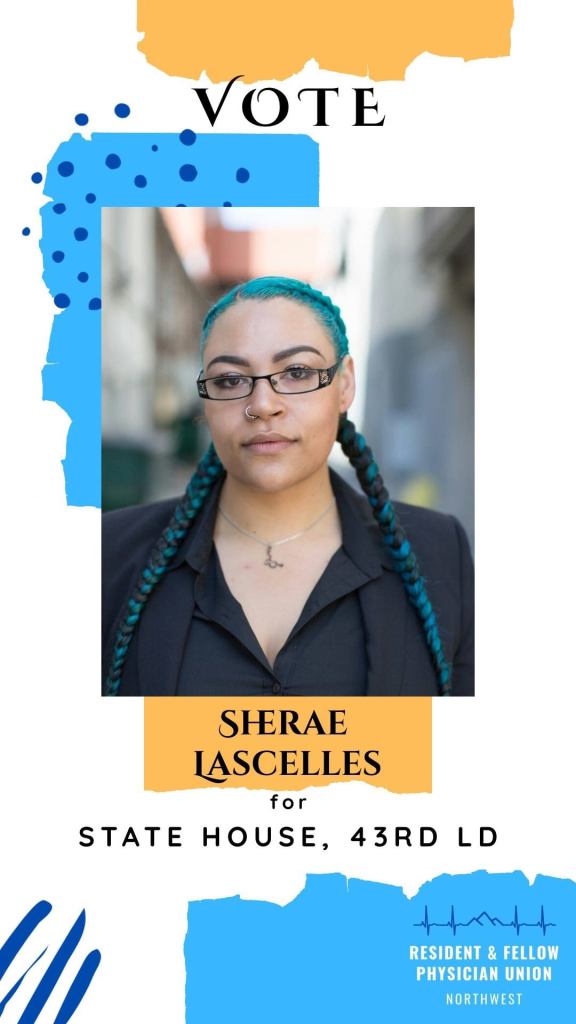 We endorse Sherae Lascelles for State House, 43rd LD. Many of our patients face profound barriers to care, and Lascelles works tirelessly to undo these inaccessibilities. Their lived experience and perspective is needed in the state legislature to fight for broad, systemic change.