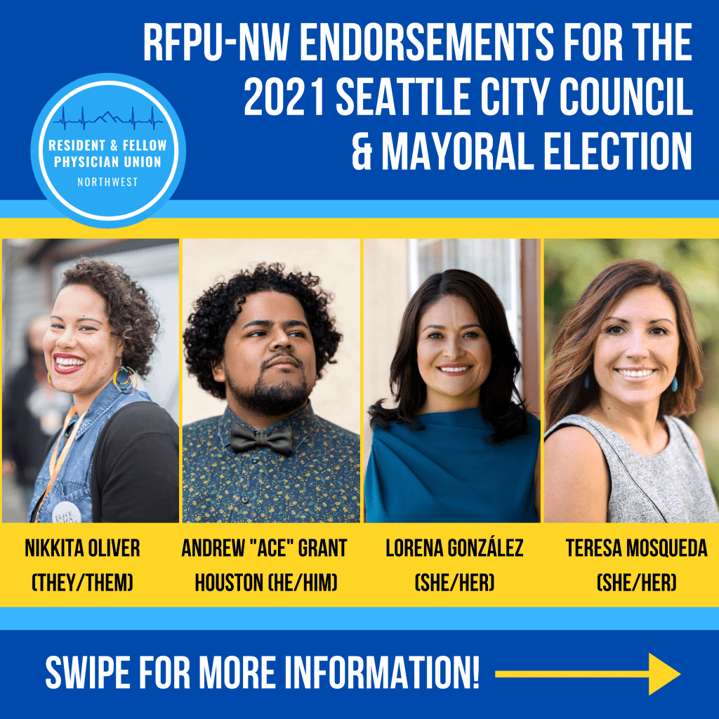 RFPU – NW is honored to endorse Andrew Grant Houston and Lorena González for Seattle Mayor. We are confident both candidates have the skills, experience, and intersectional mindset that Seattle needs for this influential role.