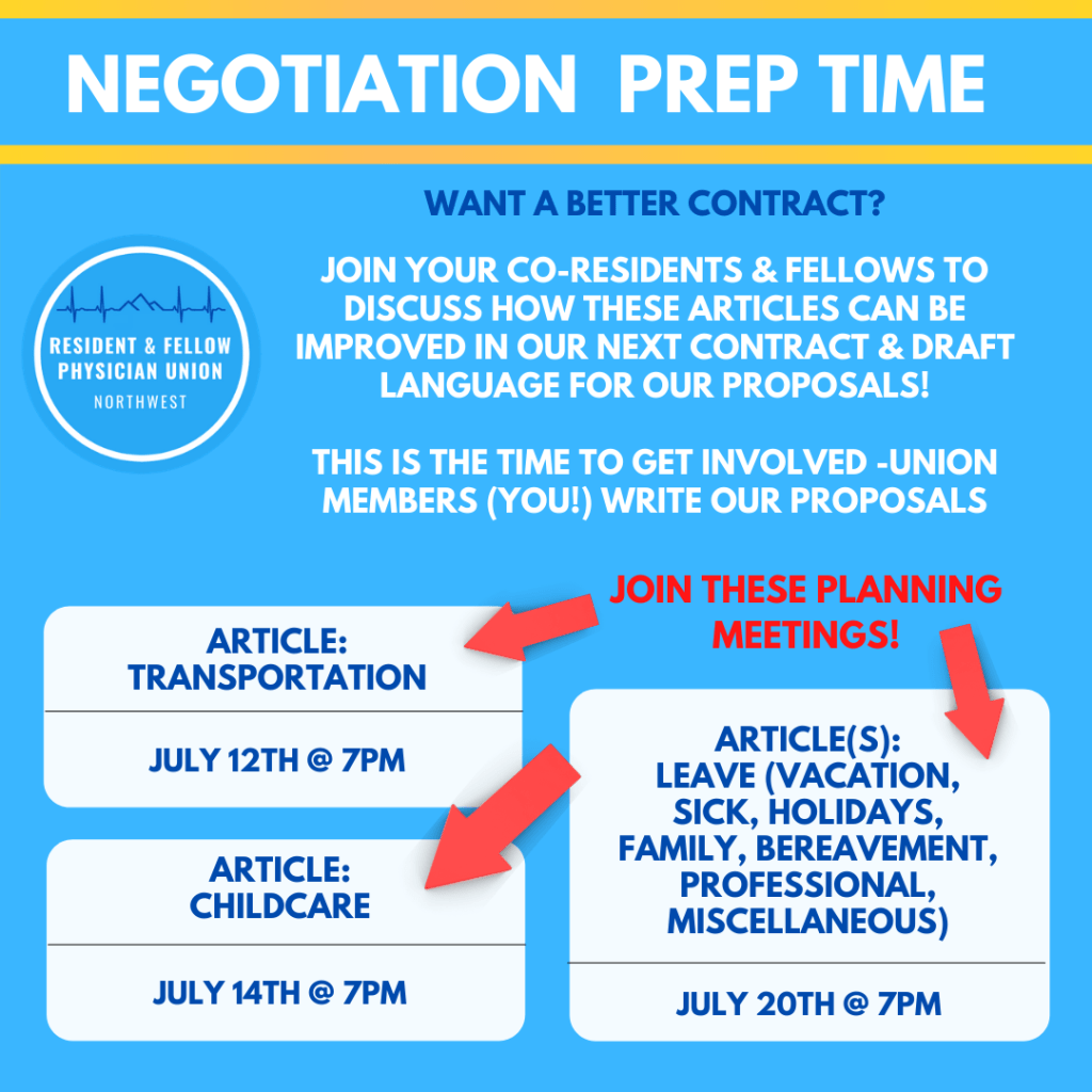 It’s important that we get different perspectives from our Union Members (you!) in order to make sure that our contract proposals represent as many resident voices as possible. See below for meeting registration links.