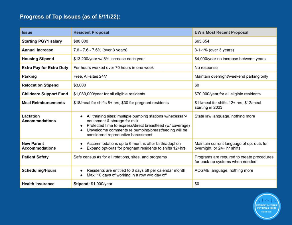Next (virtual) bargaining session: Wed, May 18th from 3:00-7:00pm. RFPU-NW encourages all of our co-residents to attend, including incoming residents and fellows – please RSVP here.