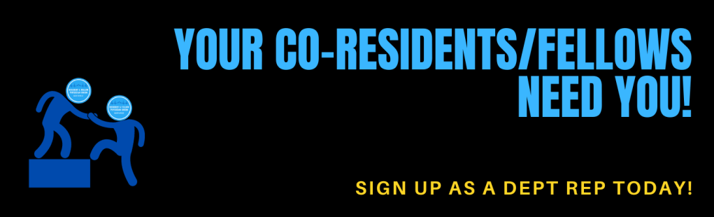 | Ensure your co-residents/fellows are represented and engaged this upcoming year by signing up to become a Department Representative for your program! By becoming a leader, you will be taking the first step to building a stronger union! Leaders play a crucial role. They make sure their co-residents/fellows’ rights are protected. They listen to their co-residents/fellows and unite people to see that “We are the Union!”- acting together is how we address issues around safety, equity, and our rights. Being a Department Rep is a minimal time commitment, but it does require being willing to engage with your co-residents/fellows on a regular basis. There is no limitation for the number of Department Reps per program, the more of you who sign-up, the better! Please Note: Returning Dept Reps will still need to fill out the form below! |