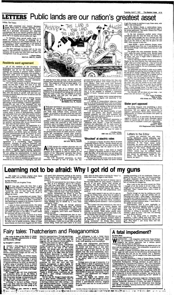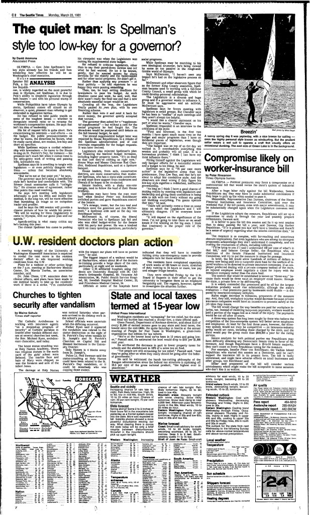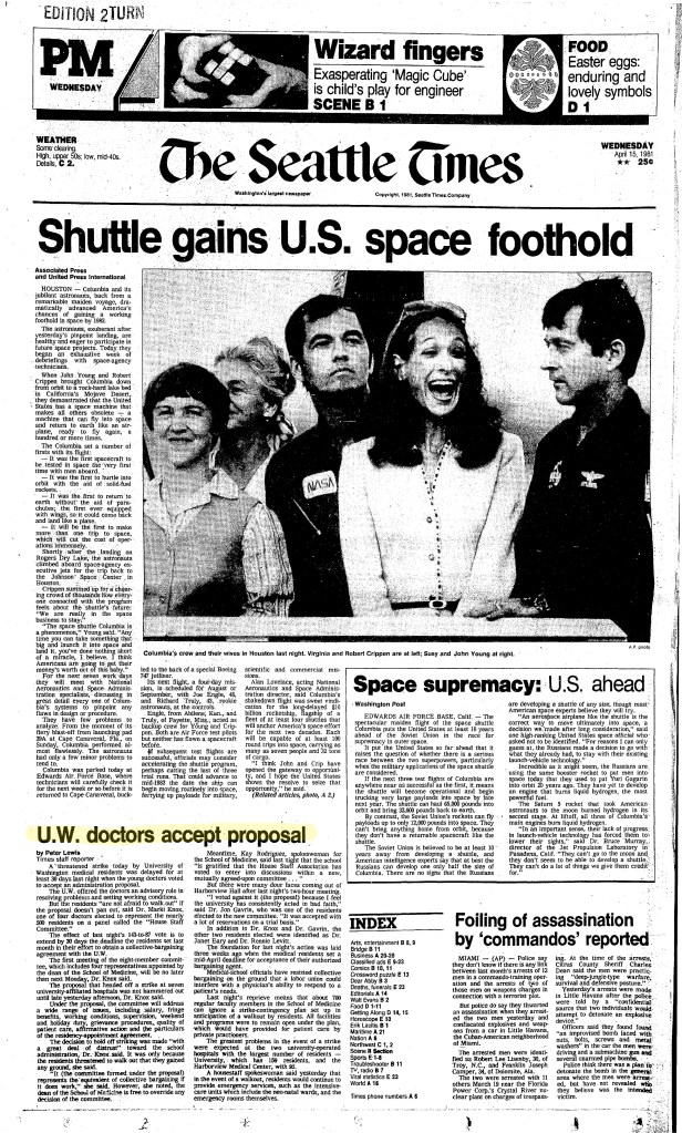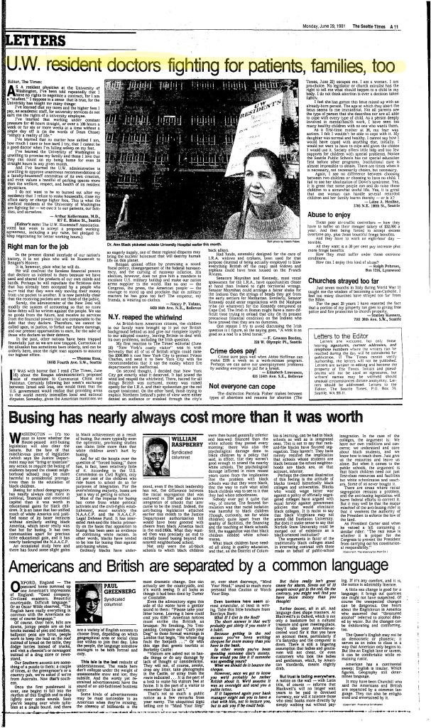 In 1980, the UW administration refused to recognize the UWHA as a representative of the residents and again refused to bargain. Once again residents prepared to strike, and with the support of local medial outlets such as The Seattle Times and the Seattle Post-Intelligencer, the UWHA successfully negotiated a contract guaranteeing improvements in work conditions such as meals provided while on call, a grievance procedure, better pay, and fringe benefits. During the 1980-81 wave of resident activism, there was much discussion on the legal status of residents and their right to negotiate collectively. At that time, under the law, residents were clearly defined as students without the power or legal backing to collectively bargain. It was only by threatening to strike, which would have effectively shut down the city’s hospitals, that University officials were forced to recognize the residents as a nonexclusive collective bargaining group and accede to some of their demands.